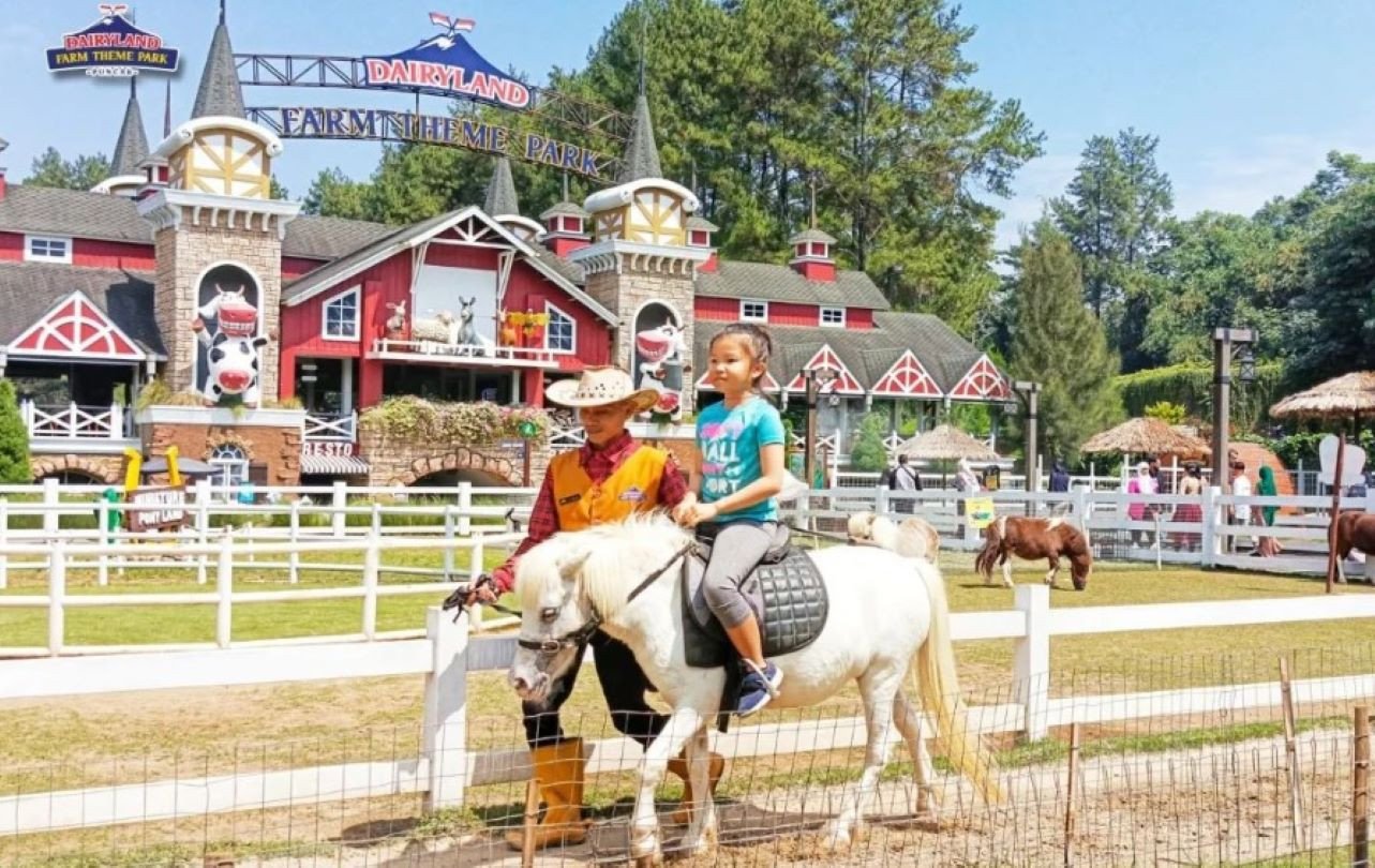 Destinasi wisata pertama yang layak untuk Anda kunjungi adalah Cimory Dairyland Farm Theme Park di Puncak. Disini, Pengunjung akan dapat berinteraksi secara langsung dengan berbagai hewan ternak seperti sapi, keledai, bebek, dan lainnya.