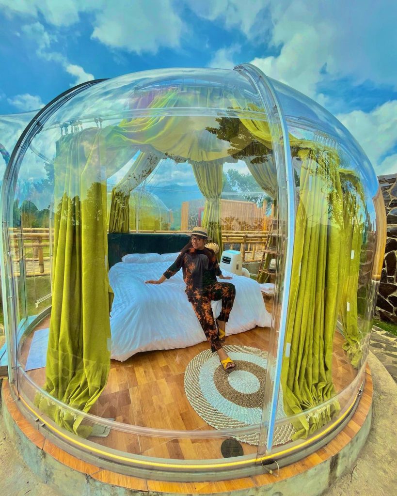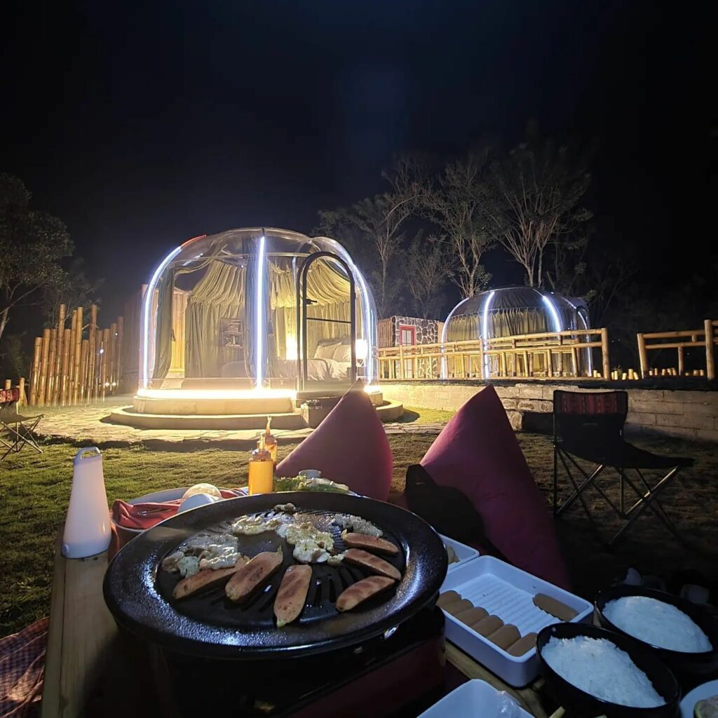 Maron Valley memang terkenal dengan penginapan berbentuk Glamping yang terbuat dari kaca transparan. Fidalamnya kamu akan menikmati berbagai furnitur tradisional yang sangat aestetik terbuat dari kayu. Fasilitas yang disuguhkan sangat lengkap. Mulai dari area camping ground, mini zoo yang menyuguhkan berbagai hewan lucu seperti kura-kura, kelinci yang cocok untuk liburan bersama buah hati.