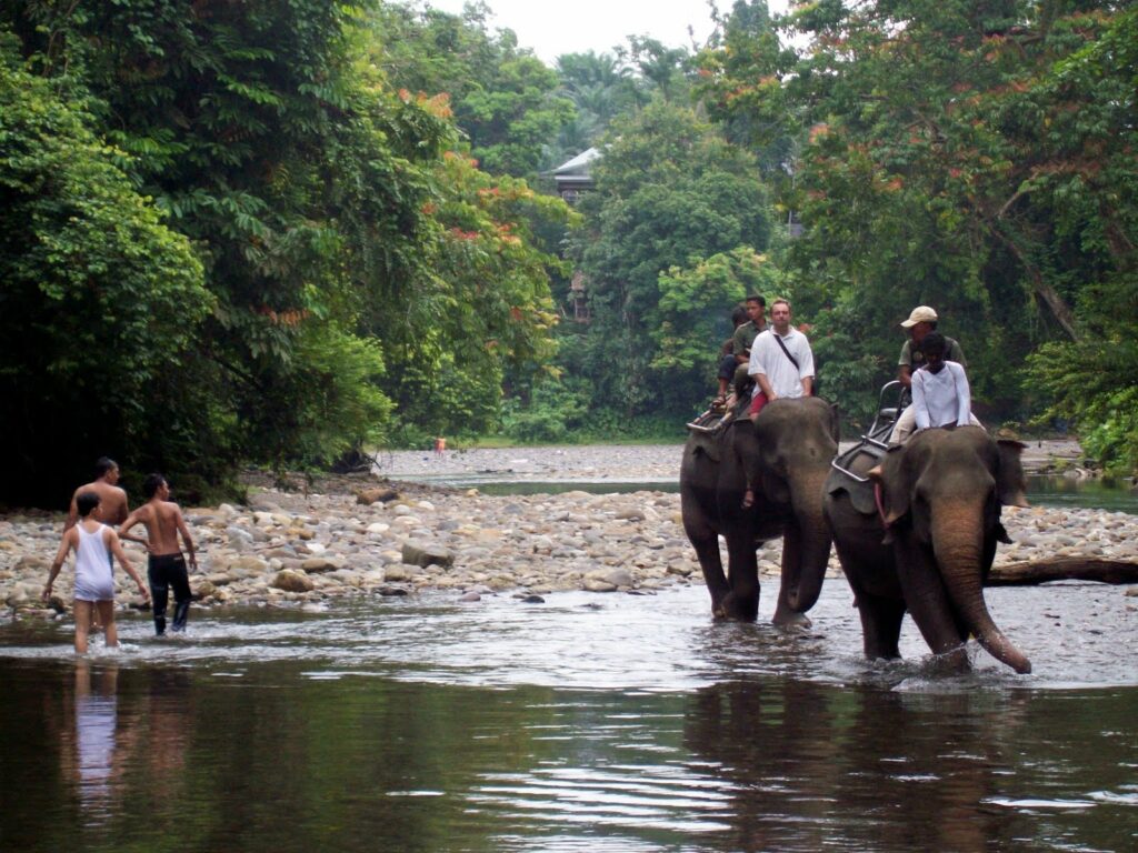 Bila kamu melakukan treking menuju kawasan Tangkahan, kamu dapat ditemani seekor Gajah. Tanpa rasa lelah, kamu tetap melakukan perjalanan dengan menumpangi seekor gajah. Gajah-gajah ini pastinya terlatih dan menjadi teman para patroli kawasan Taman Nasional Gunung Leuser. Selama berwisata, kamu pastinya merasakan patroli keliling dijalur ilegal logging.