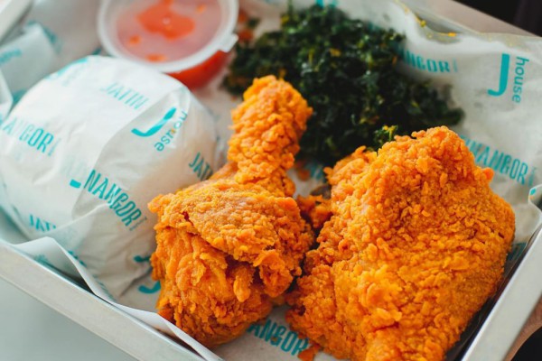 Menu yang ditawarkan Jatinangor House adalah ayam goreng tepung yang renyah. Tampilan dan rasa ayam goreng ini mirip seperti yang disajikan oleh McDonald's.